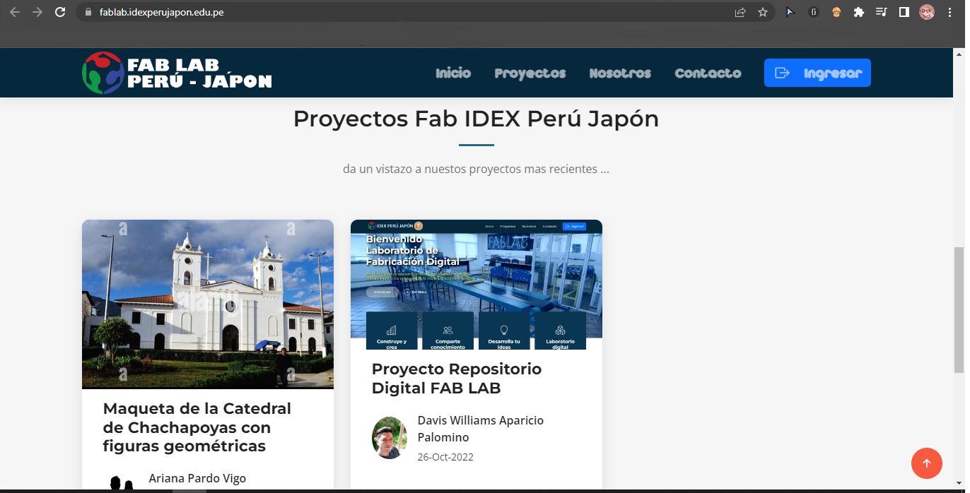 La geometría es considerada una de las ciencias más antiguas, siendo una rama de la matemática donde cobran importancia las longitudes, áreas y volúmenes. Esta rama se ocupa de las figuras geométricas y de sus propiedades, tanto en los planos como en el espacio. La geometría es pieza fundamental para las edificaciones. Todas ellas, en general, crean espacios geométricos donde la economía del espacio cobra especial relevancia. Y es que la misión de la arquitectura geométrica no es otra que economizar las edificaciones, con el ahorro de materiales y de espacio que eso supone. Se aprovechan materiales y no se desperdicia espacio útil. En ese sentido se desea demostrar la importancia del uso de las figuras geométricas en la arquitectura chachapoyana a través de una maqueta desarrollando un diseño en 2D y 3D, de un monumento arquitectónico chachapoyano (Catedral de Chachapoyas) para luego poder elaborar una maqueta con material que nos permita generar un rompecabezas, usando equipamiento de un Laboratorio de Fabricación Digital (FAB LAB “Perú Japón”). Las integrantes de este proyecto son Ariana Pardo Vigo, Alexandra Tejedo Velásquez, Adriana Herrera, Adriana Maicelo, Andrea Pacheco y Anita Puerta Pierola