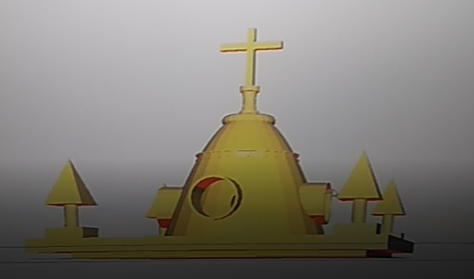 Maqueta de la Catedral de Chachapoyas con figuras geométricas
