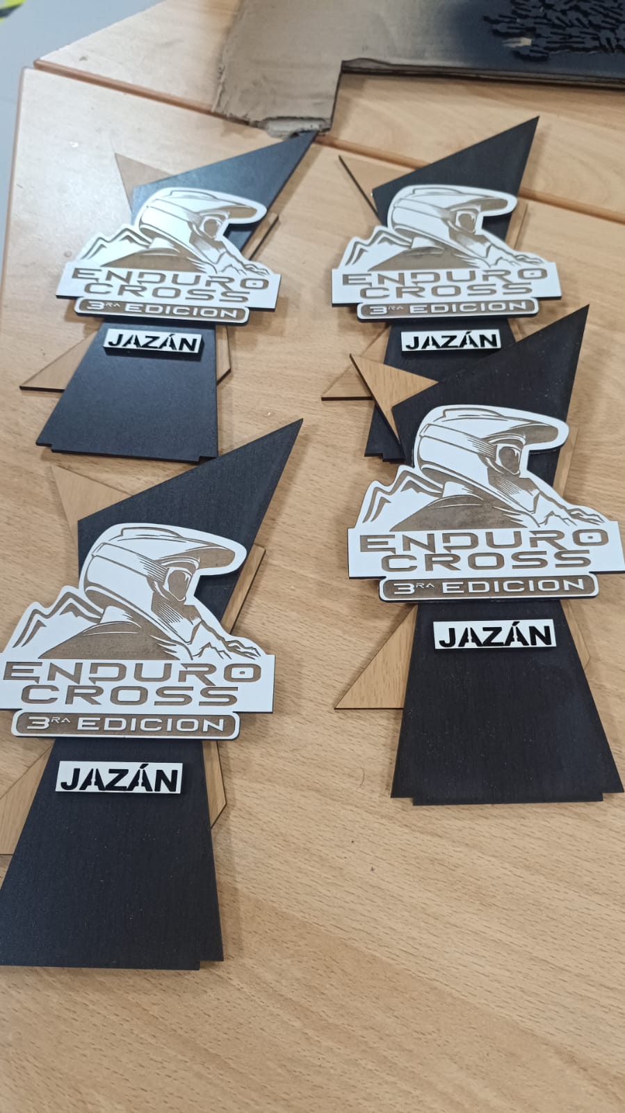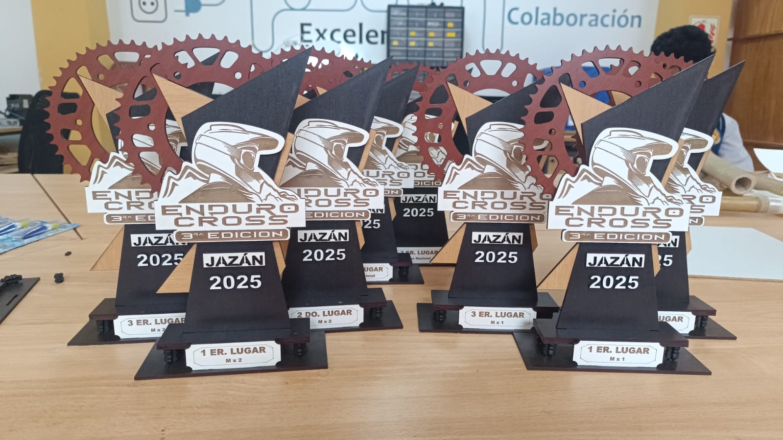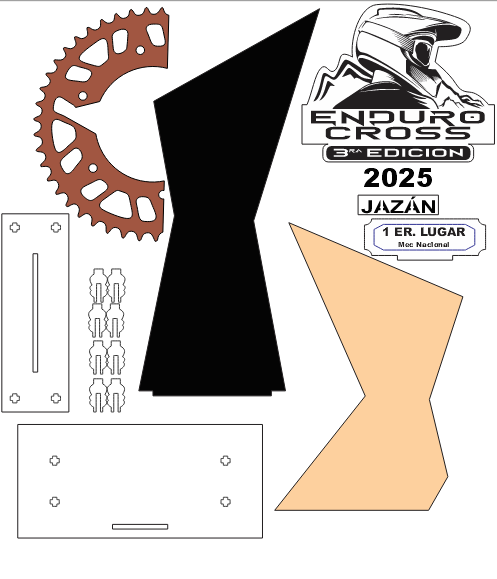 Diseñar y fabricar un trofeo representativo para la competencia Enduro Cross – 3ra Edición JAZÁN 2025, empleando materiales en capas para generar un diseño atractivo, resistente y con identidad deportiva.